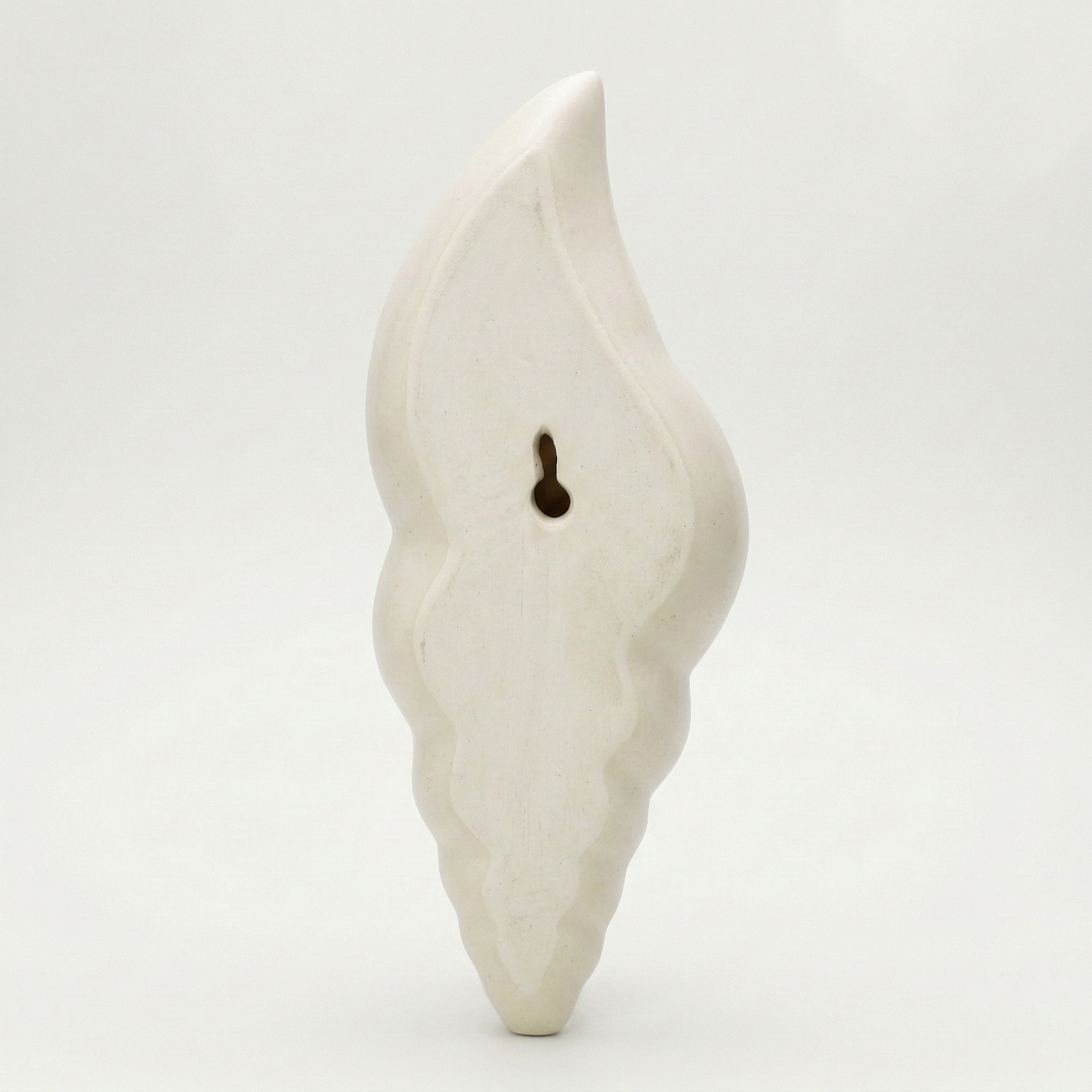 Bring a touch of the coast to your walls with the Coastal Shankh Ceramic Wall Planter from Roostwhispers. Inspired by the elegant form of a conch shell, this ivory ceramic piece features a smooth, spiral silhouette with a hollow front cavity for greens and a keyhole-style opening at the back for easy wall mounting.
