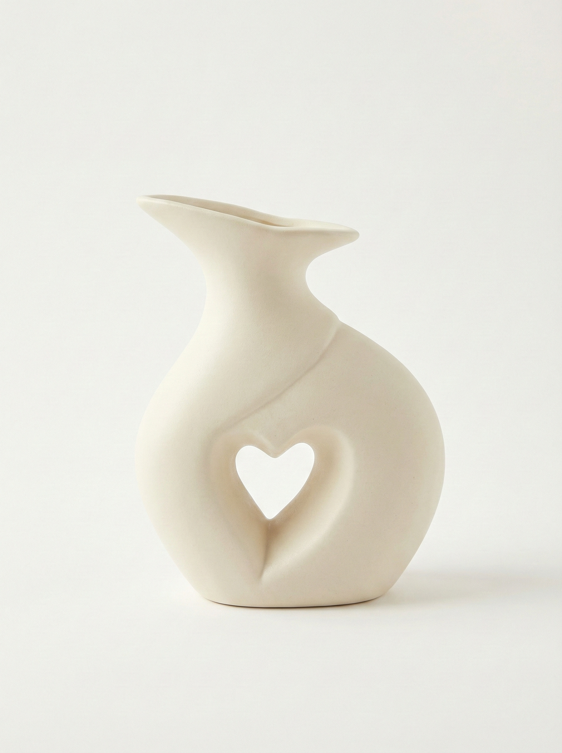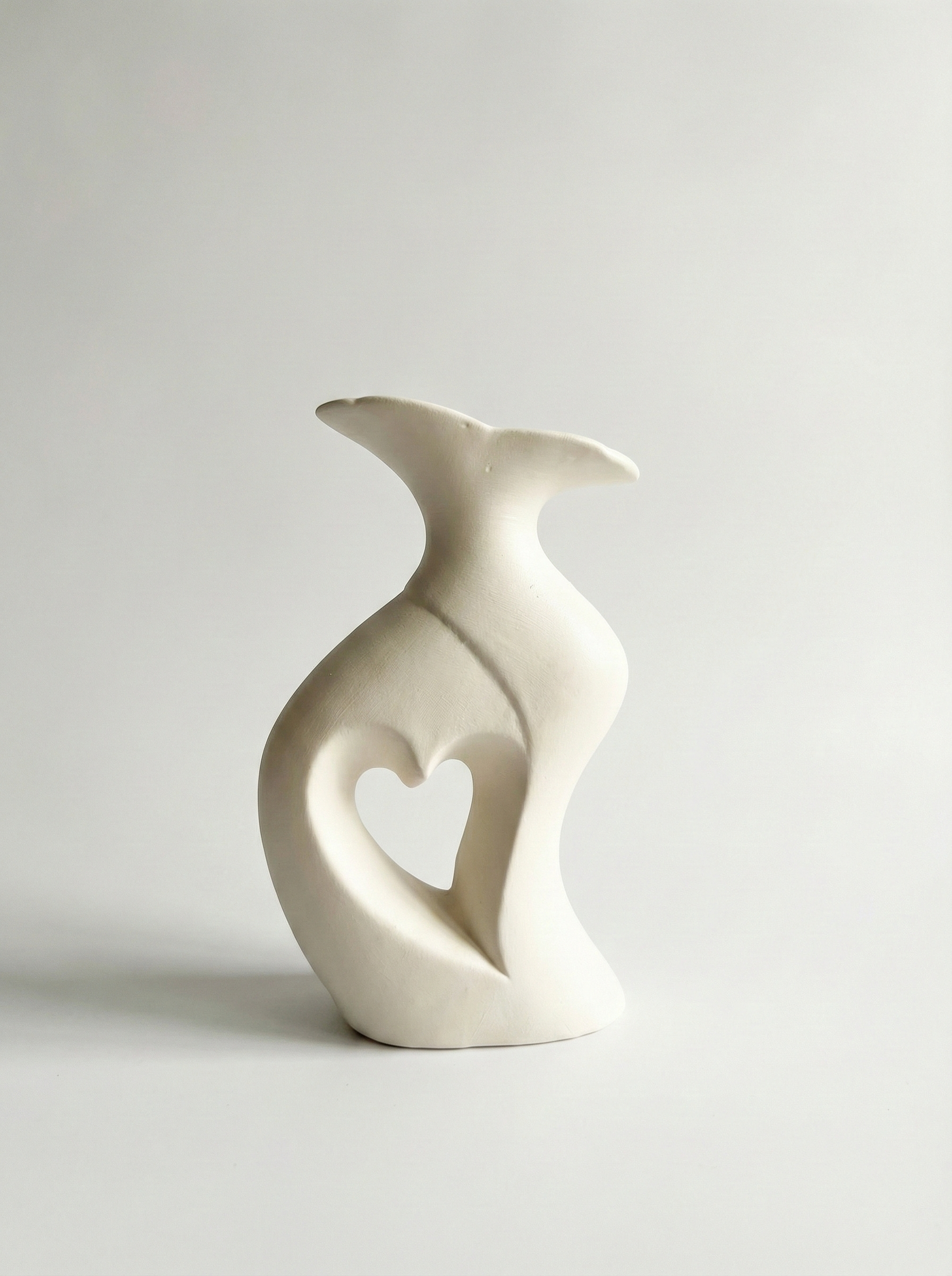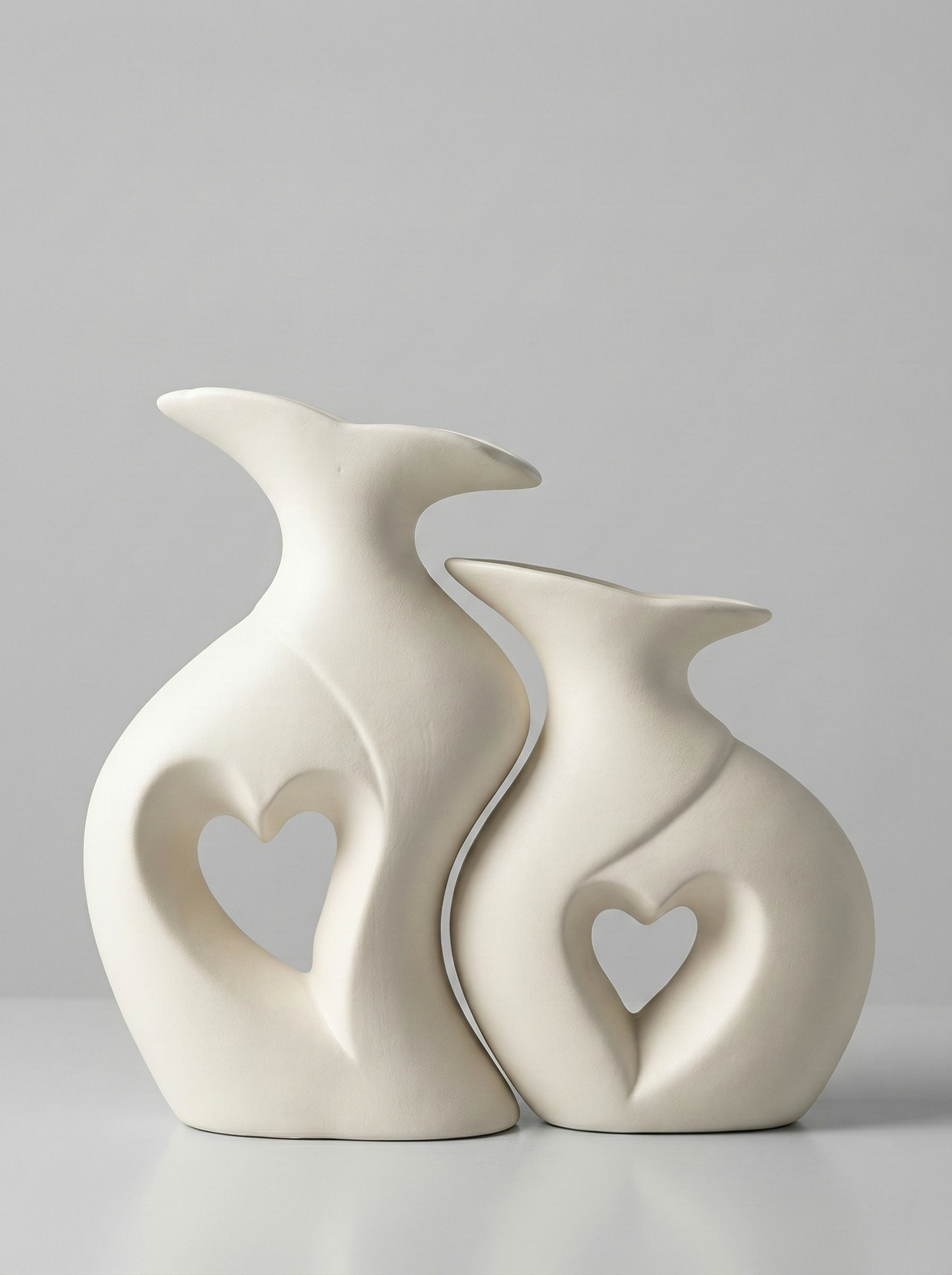 - Sculptural ceramic vase pair with heart cut-out design